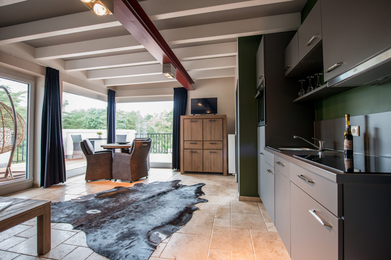 Das ca. 52m² große Apartment liegt im dritten Obergeschoss vom Boardinghouse und verfügt über einen großzügigen Wohnraum mit weiten Panorama-Fenstern, eine Küche und Badezimmer sowie ein Schlafzimmer. Die Highlights dieses Apartments sind die ca. 15m² große Dachterrasse und die Außenbadewanne (nutzbar Frühjahr bis Herbst). Sie nutzen das W-LAN kostenfrei, der Wellnessbereich im Haupthaus mit finnischer Sauna, Bio Sauna und Dampfbad steht Ihnen ebenso zur freien Verfügung.